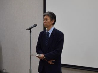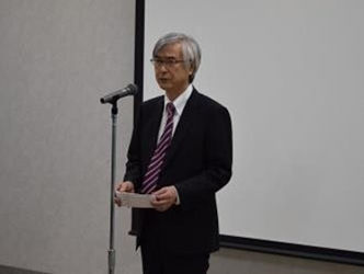 施設見学会で尾家学長、花本生命体工学研究科長にご挨拶いただきました。