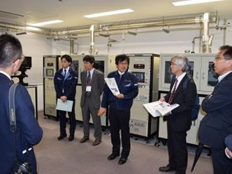 スマートフォンやハイブリット自動車、家電製品を例にパワー半導体について解説、具体的な研究紹介、研究設備について紹介・見学が行われました。