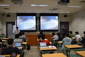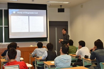 パワーエレクトロニクス、パワー半導体の概要説明、具体的な使用例をあげ、我々の身近にある電気機器に使用されていることを認識してもらいました。学生数名による現在取り組んでいる研究テーマのポスターセッションを行い、質疑応答、意見交換が活発に行われました。 実験室見学では、デモンストレーション等、実際にパワー半導体ふれてもらいながら意見交換しました。 - 国際交流講演:特別セミナー